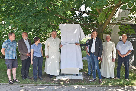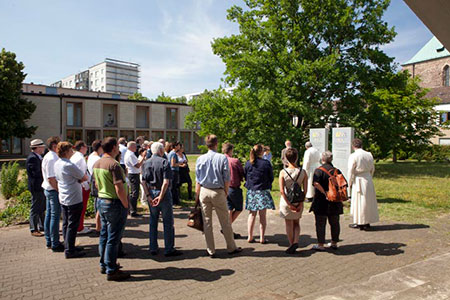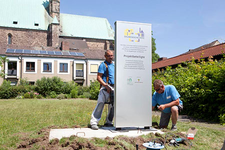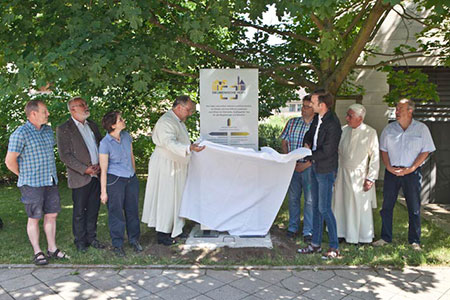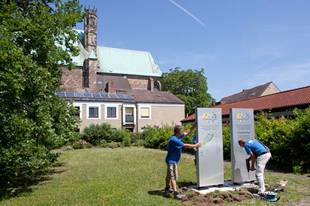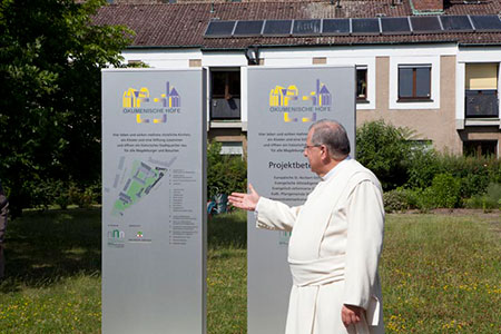Mit der Aufstellung von Informationstafeln rings um das Gelände der Ökumenischen Höfe wird die Öffentlichkeit über das Projekt informiert.